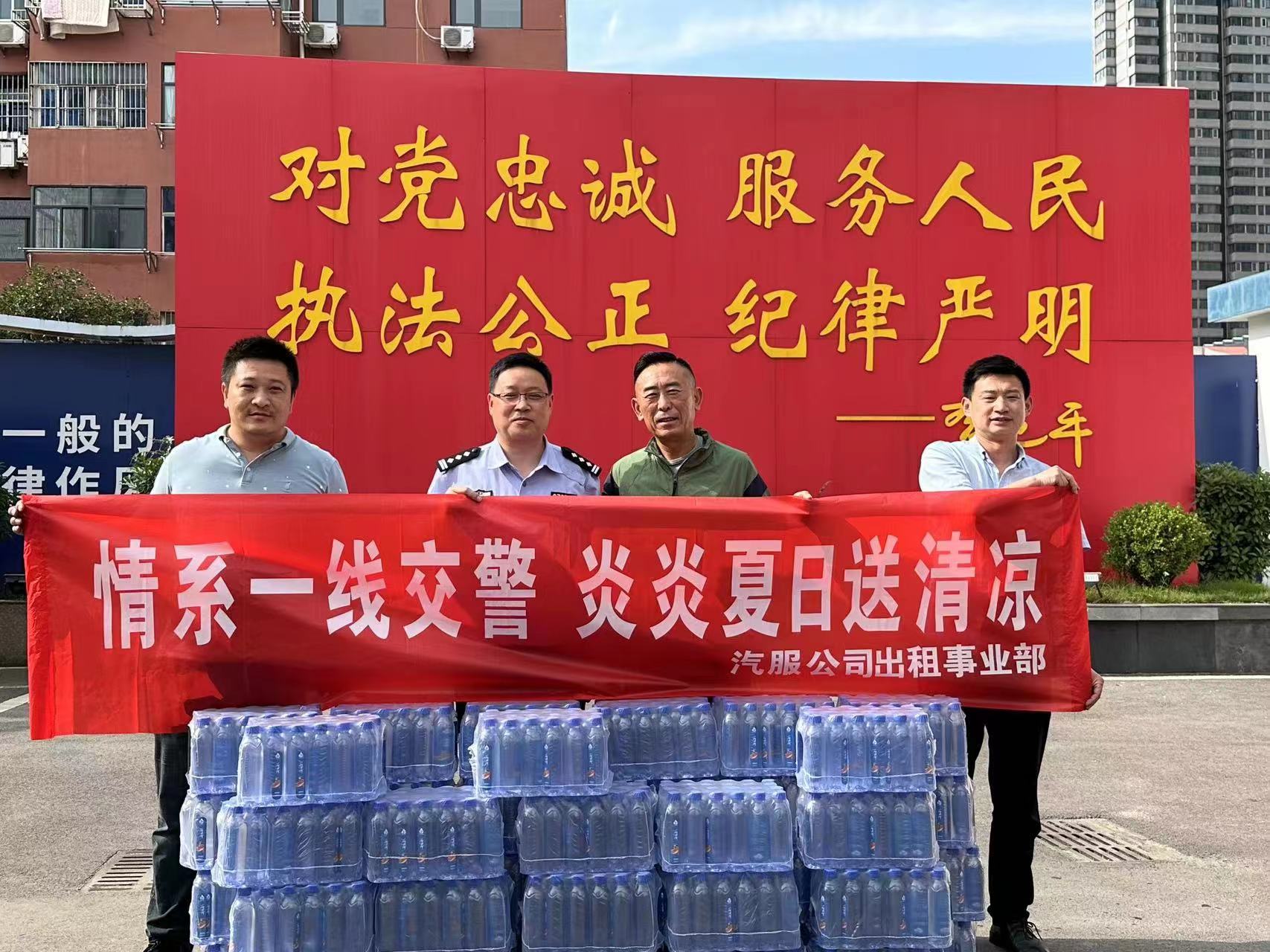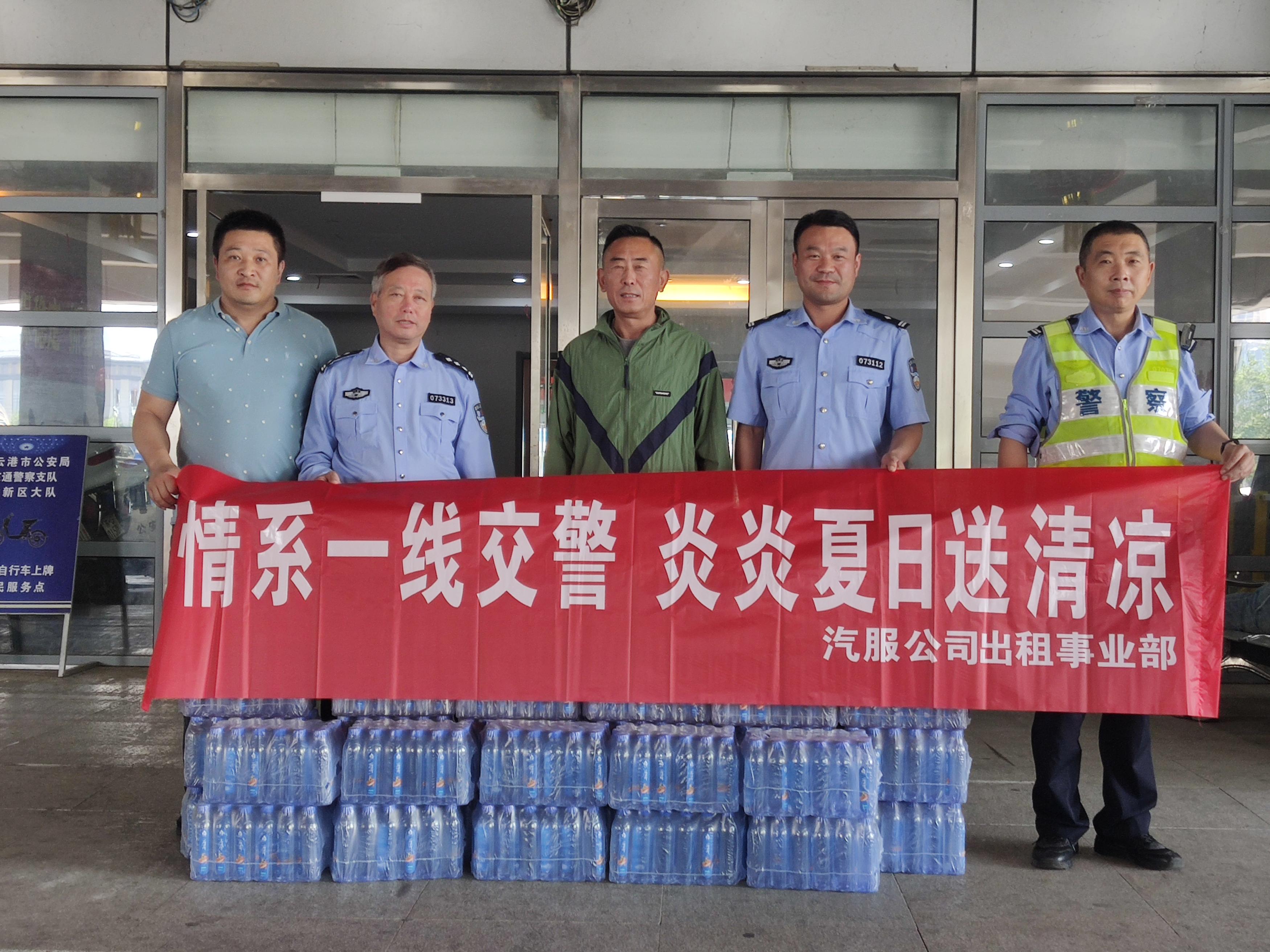 連日來,連云港市高溫天氣持續(xù)不斷,酷熱難耐,一線交警們在每個繁忙的車流、人流中,冒著高溫,頂著酷暑,依舊堅守維持交通秩序,為市民安全出行保駕護(hù)航,為表達(dá)對辛苦執(zhí)勤一線交警的敬意,6月6日上午,汽服公司安全保衛(wèi)處處長梁洪春、出租汽車事業(yè)部相關(guān)一行人員為他們送上了清涼的飲用水、防曬用品等物資。