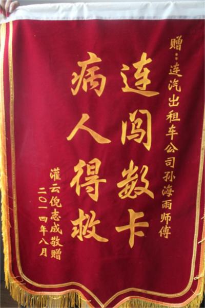 “出租車師傅前前后后為我跑了將近一個小時,連車費都沒收,當時我太痛了,都沒有來得及好好的感謝這位好心的師傅!痹诩茵B(yǎng)病的謝女士激動的說。為了表示對孫師傅的感謝,謝女士的家人專程來到連汽出租公司為孫師傅送上了一面錦旗:“連闖數(shù)卡,病人得救”,同時提出希望公司能幫忙協(xié)調處理“雷鋒”的哥由于救人而產生的交通違法記錄。