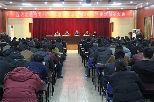 2016年1月17日,連汽出租公司2015年度工作總結(jié)暨2016年春運動員大會在公司會議室隆重召開。公司黨政領導班子成員、“雷鋒的士”車隊隊員和部分駕駛員代表200余人參加大會。海通汽車服務公司總經(jīng)理趙士強、副總經(jīng)理劉超到會并作重要講話。會議由分公司經(jīng)理成龍同志主持。