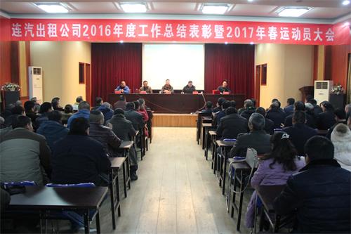 2017年1月10日,連汽出租公司2016年度工作總結(jié)表彰暨2017年春運(yùn)動(dòng)員大會(huì)在公司會(huì)議室隆重召開(kāi),海通汽車(chē)服務(wù)公司副總經(jīng)理相文昌、連云港市交警事故大隊(duì)馮維通警官出席會(huì)議,連汽出租公司黨政領(lǐng)導(dǎo)班子成員、“雷鋒的士”車(chē)隊(duì)隊(duì)員和部分駕駛員代表200余人參加會(huì)議。會(huì)議由分公司經(jīng)理成龍同志主持。