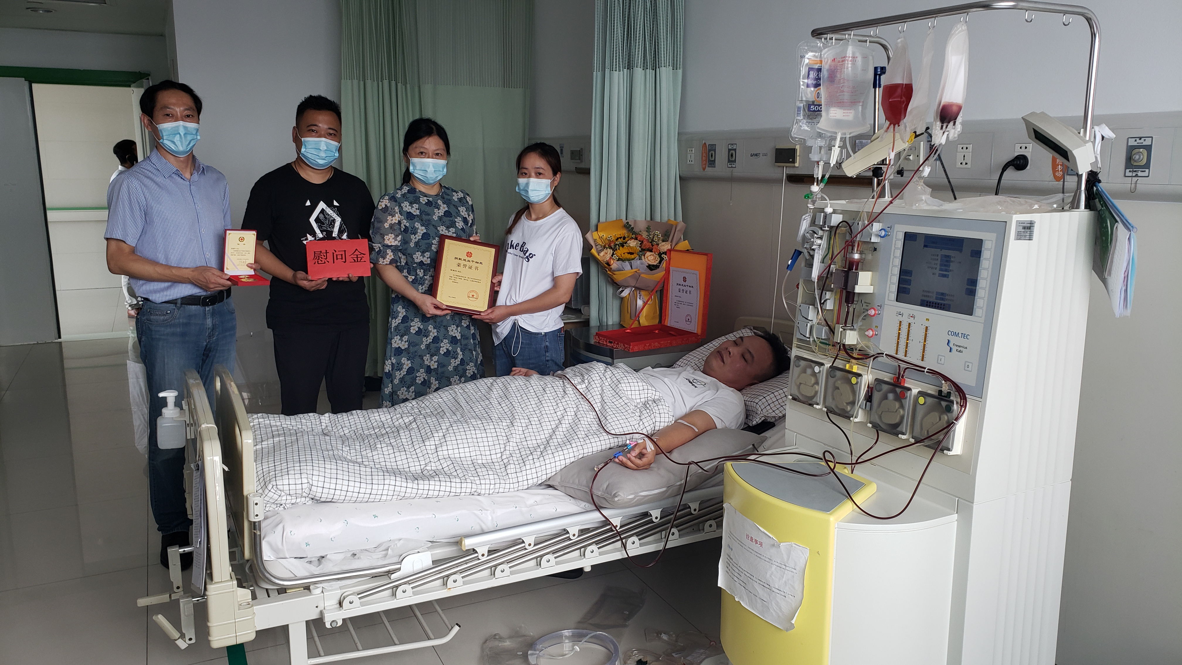 8月2日上午9時許,汽服公司出租汽車事業(yè)部90后的哥周建華躺在連云港市第一人民醫(yī)院血液科的采集床上,兩個手臂都上插著管子,“血細胞分離機”正從他身上抽取著鮮紅的血液,分離出來的造血干細胞混懸液一點一點流入到采血袋中,中午13:40分,256毫升的造血干細胞混懸液成功完成采集,周建華成為海州區(qū)第14例,連云港市第38例造血干細胞捐獻者。