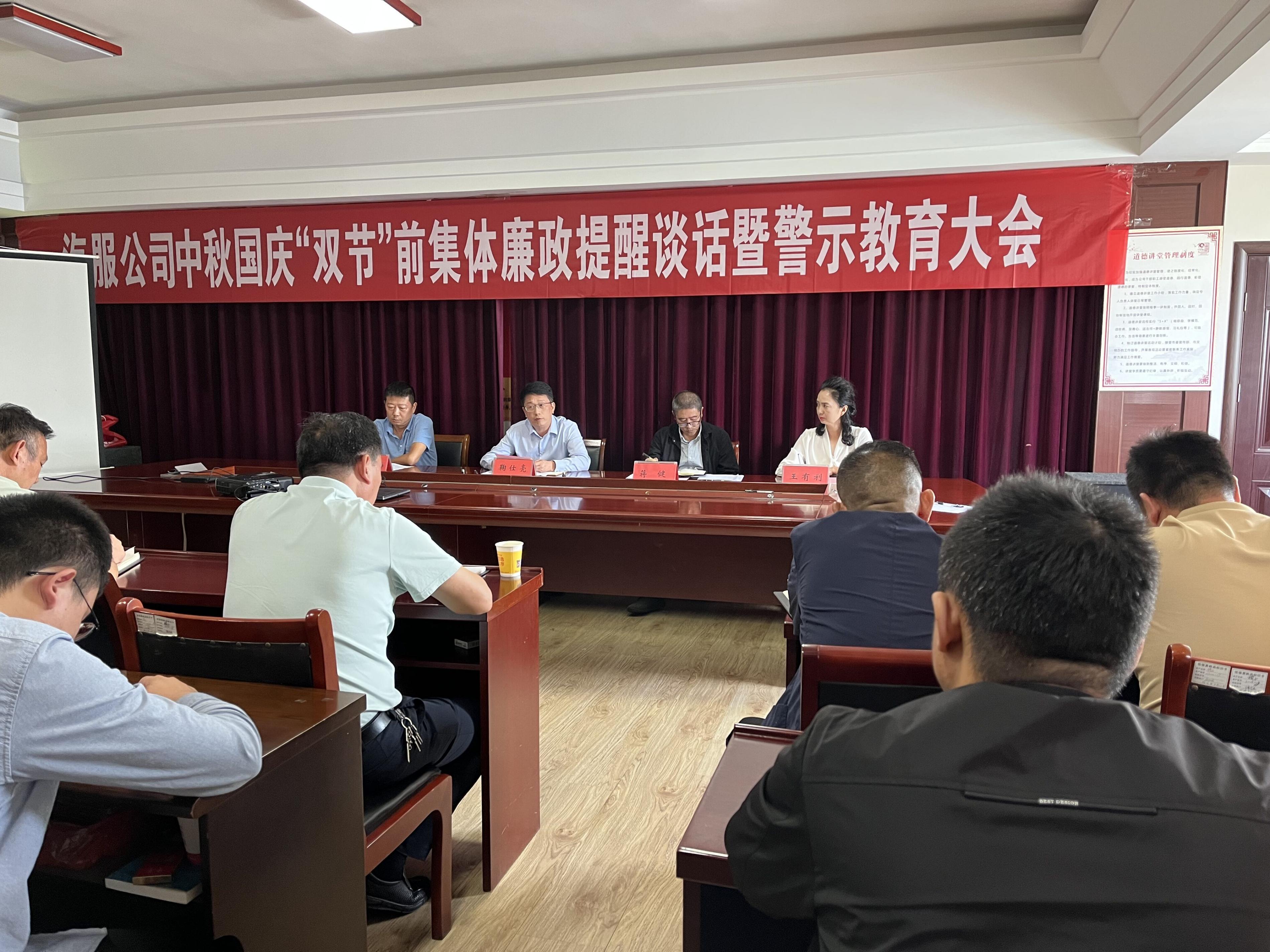“中秋”“國慶”雙節(jié)將至,為營造風清氣正、崇廉尚儉的節(jié)日氛圍,防止“四風”反彈,進一步落實中央八項規(guī)定精神,守住“底線”,不觸“紅線”,筑牢“防線”,9月27日上午,汽服公司召開中秋國慶“雙節(jié)”前廉政談話會暨廉政警示教育大會。公司黨委副書記、常務副總經(jīng)理蔣健主持會議,公司領(lǐng)導班子成員、全體中層干部參加會議。