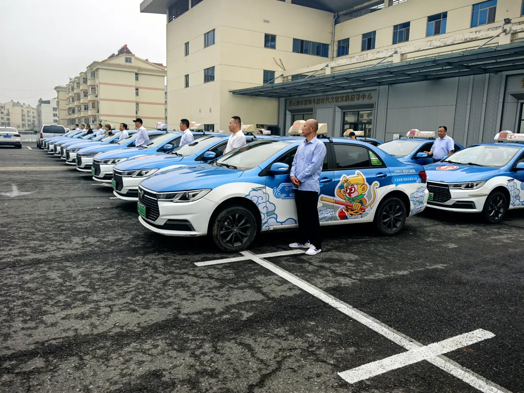 車身設計中融入了鮮明的連云港元素:飄逸的祥云呼應“大圣故里”的仙境意蘊,卡通“齊天大圣”手持金箍棒,笑容可掬,伴以“大圣故里西游勝境—連云港”字樣,整車猶如一幅移動的山海文化畫卷。作為雷鋒精神的當代延續(xù),該車隊駕駛員均是從“雷鋒的士”隊伍中遴選出的“文化服務大使”,他們不僅恪守駕駛安全,更主動推介城市特色、講述港城故事,用實際行動弘揚“奉獻、友愛、互助、進步”的“雷鋒車”服務理念。