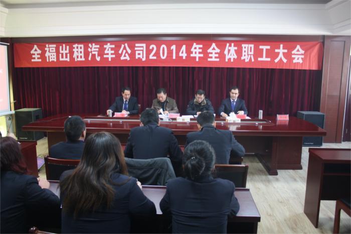2014年1月22日上午,全福出租公司在三樓會議室召開了全體職工大會。會議由黨支部書記李廣新同志主持,海通汽服公司黨委書記劉元祥、人力資源處于俊洋受邀參加了會議。