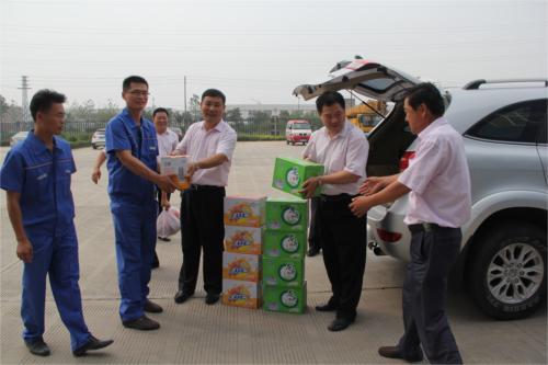近段時(shí)間連日高溫,驕陽(yáng)似火,酷暑難耐,但基層一線的廣大干部職工仍堅(jiān)守奮戰(zhàn)在生產(chǎn)崗位,用他們的辛勞和汗水,保障企業(yè)生產(chǎn)經(jīng)營(yíng)工作有序開(kāi)展。為切實(shí)有效地維護(hù)廣大職工的合法權(quán)益,做好防暑降溫工作,7月15日,汽服公司總經(jīng)理趙士強(qiáng)、黨委書(shū)記劉元祥、工會(huì)主席趙明,赴各權(quán)屬單位為堅(jiān)守在高溫一線的職工送上紅綠茶飲料、綠豆、白糖等防暑降溫品。每到一處,公司領(lǐng)導(dǎo)要求各權(quán)屬單位要進(jìn)一步落實(shí)防范措施,認(rèn)真按照“送清涼、送安全、送法律”工作要求,關(guān)心職工生產(chǎn)生活,認(rèn)真做好高溫時(shí)段防暑降溫,并親切地叮囑一線員工勞逸結(jié)合,合理安排作息時(shí)間,切實(shí)保障生產(chǎn)安全。